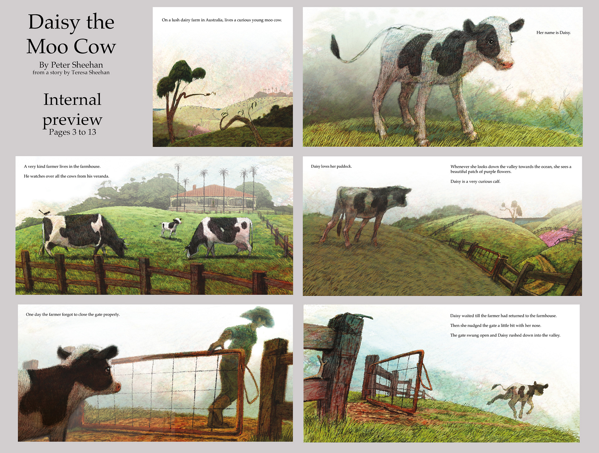 Daisy the Moo Cow is a great picture book for bedtime reading to preschool children. It tells the story of a curious calf, who is rescued by a kind farmer, after eating too many purple flowers. Written and illustrated by Peter Sheehan. Hardcover, 36 pages. A companion book to Willy Wagtail Grows Up. Recommended for children ages 2+.