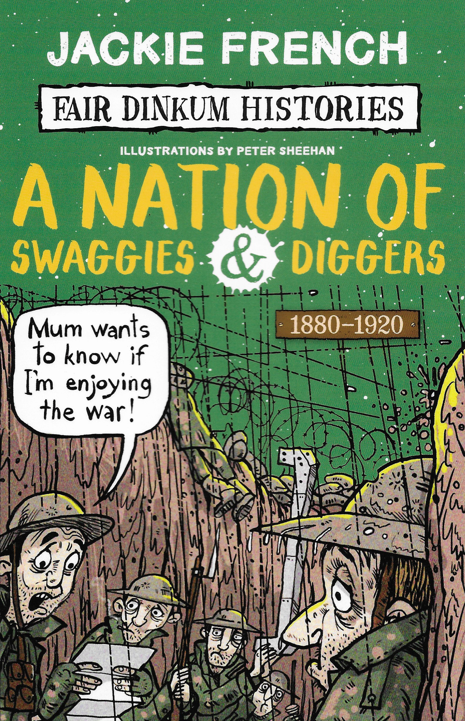 The Fair Dinkum Histories are a series of 8 books, written by Jackie French with gags and humorous illustrations by Peter Sheehan, covering Australian history from the days of giant megafauna right up to 2010.s