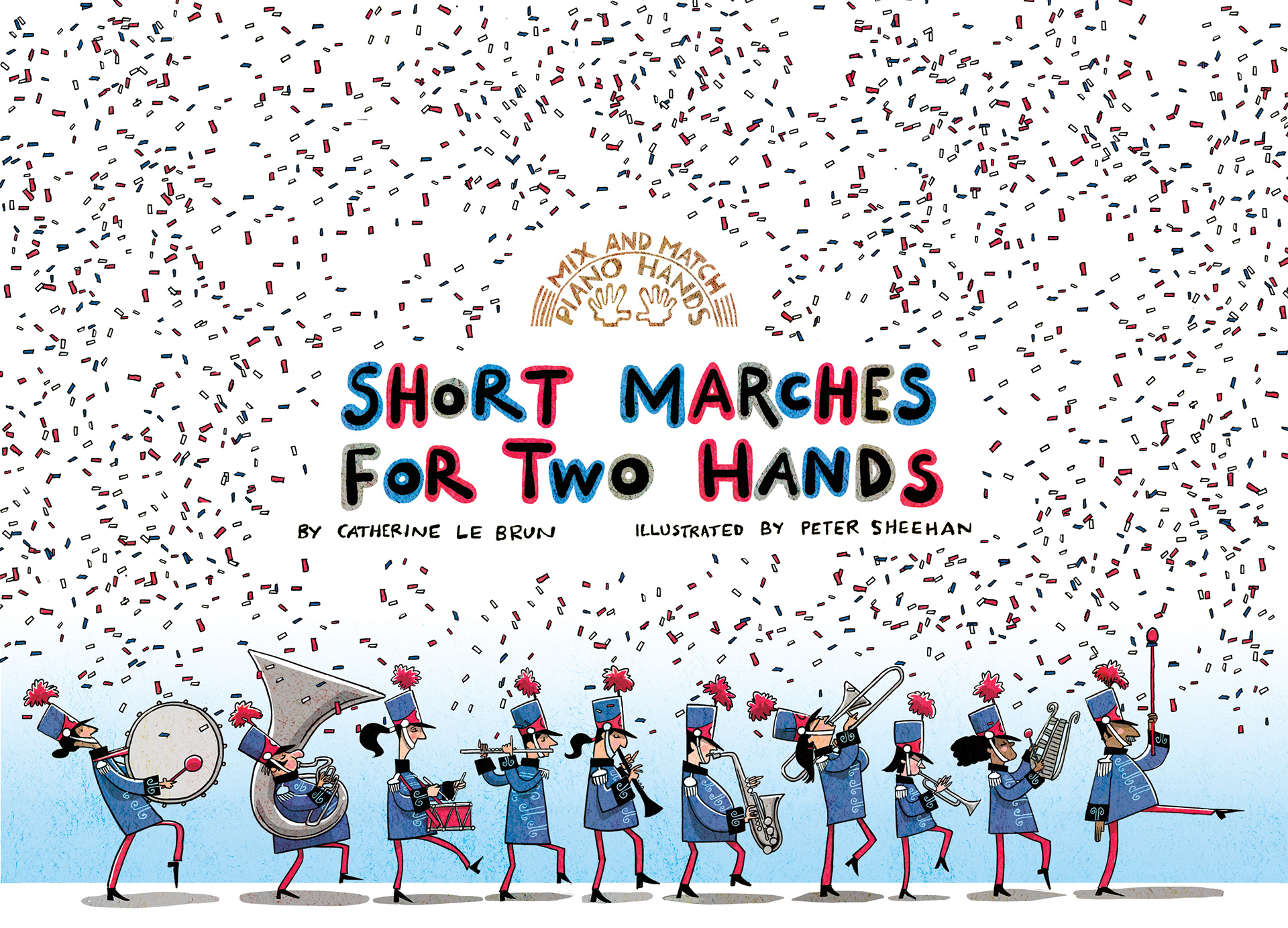 Written by Catherine Le Brun and illustrated by Peter Sheehan, this 30 page, A4, coil-bound book contains 10 short marches that can be mixed and matched to make 100 different combinations. It is the sixth book in the Mix and Match Piano Hands series. A series designed for musical tuition, musical exploration and fun.