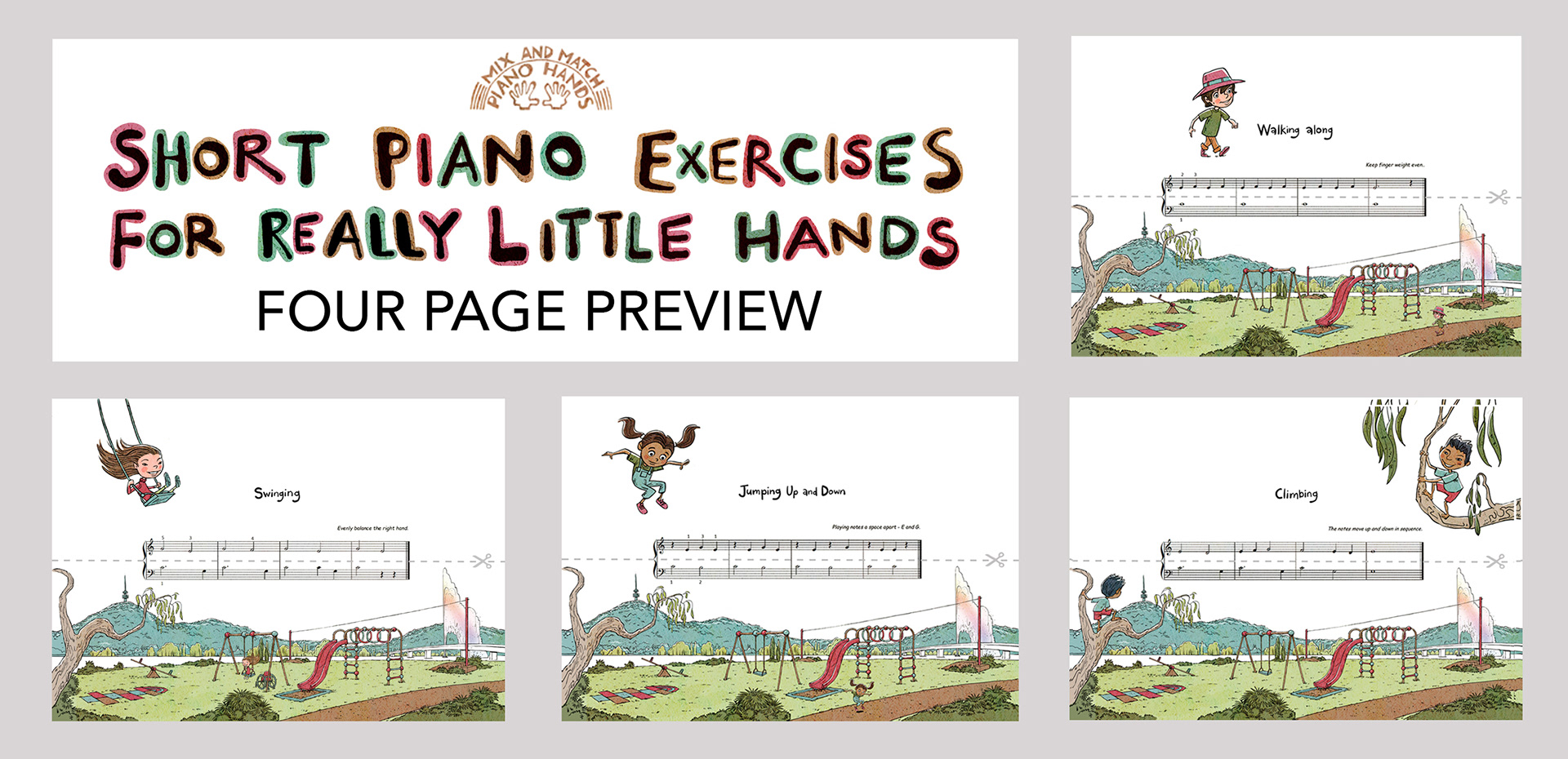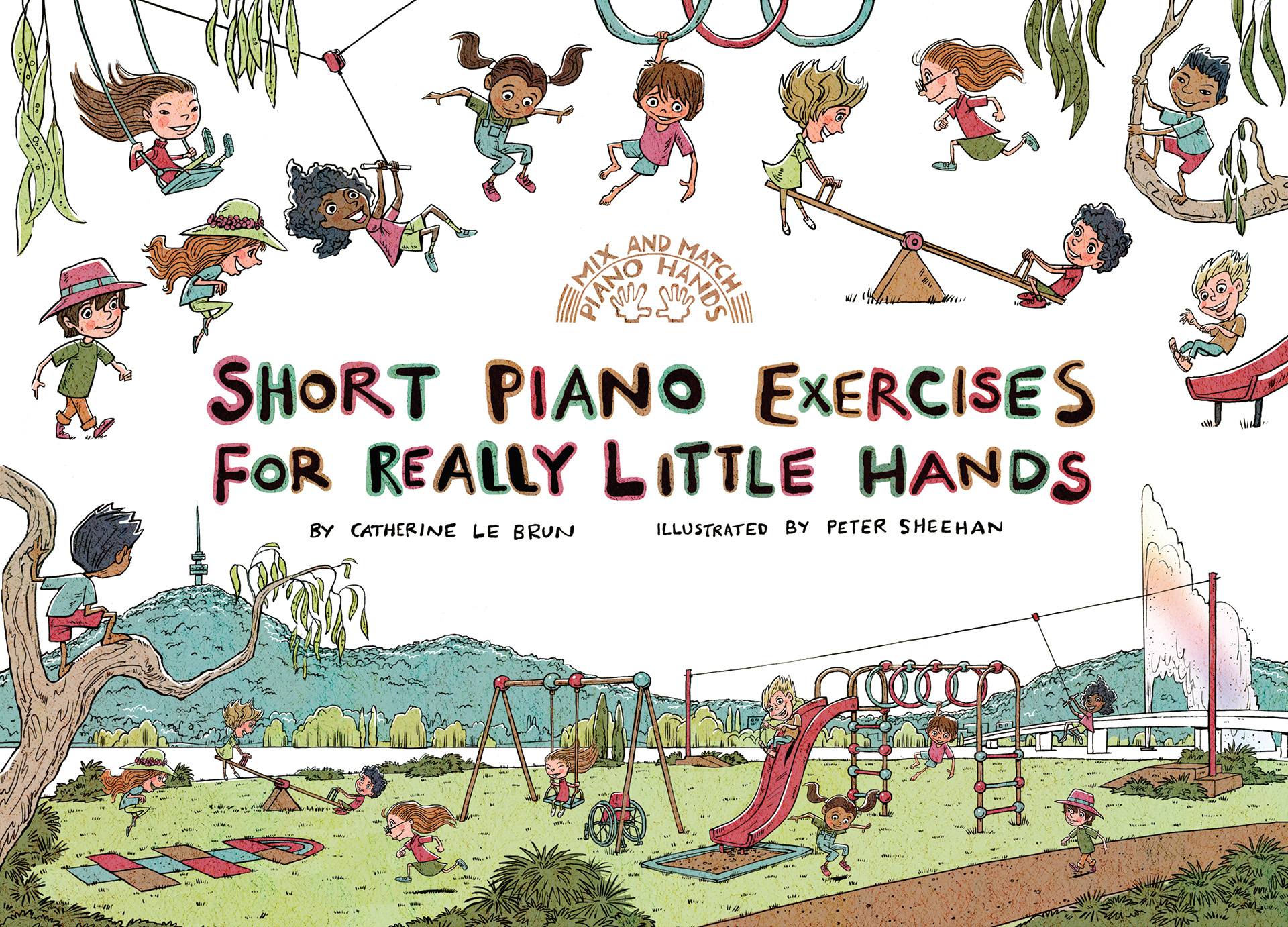 Short Piano Exercises for Really Little Hands is a Mix and Match Piano Hands book. It is fun to use because children, 3 years+, can choose which parts for the right and left hand they want to combine to create the exercise for practice. Both parts are independent because of the split pages and can be mixed and matched to suit the progress of the player. Written by Catherine Le Brun and illustrated by Peter Sheehan, this 32 page, A4, coil-bound book contains 10 short easy piano pieces that can be mixed and matched to make 100 different combinations for very young children. It is the first book in the Mix and Match Piano Hands series. Music books designed for tuition, exploration and fun.