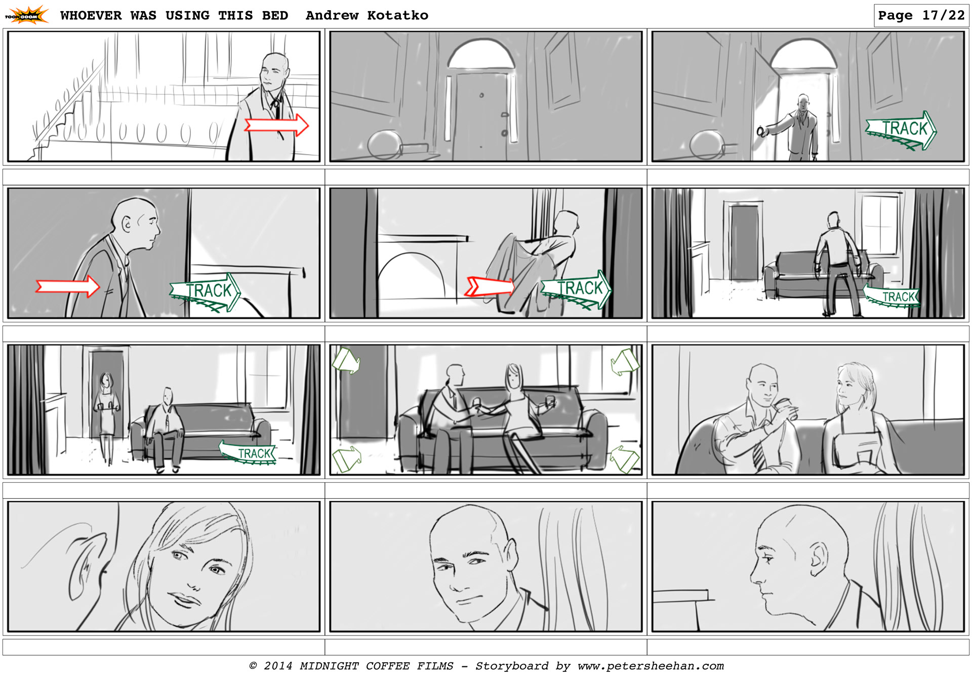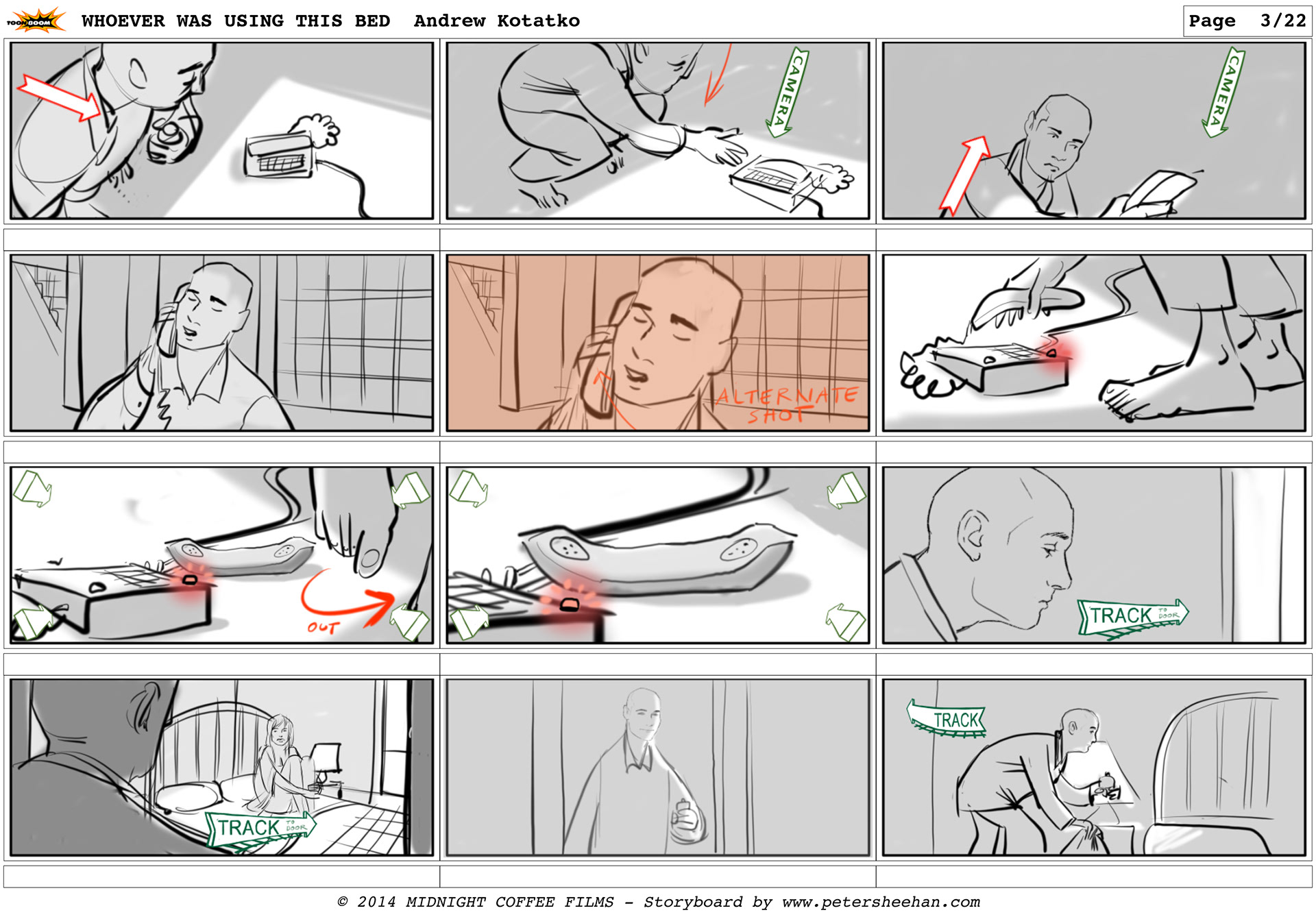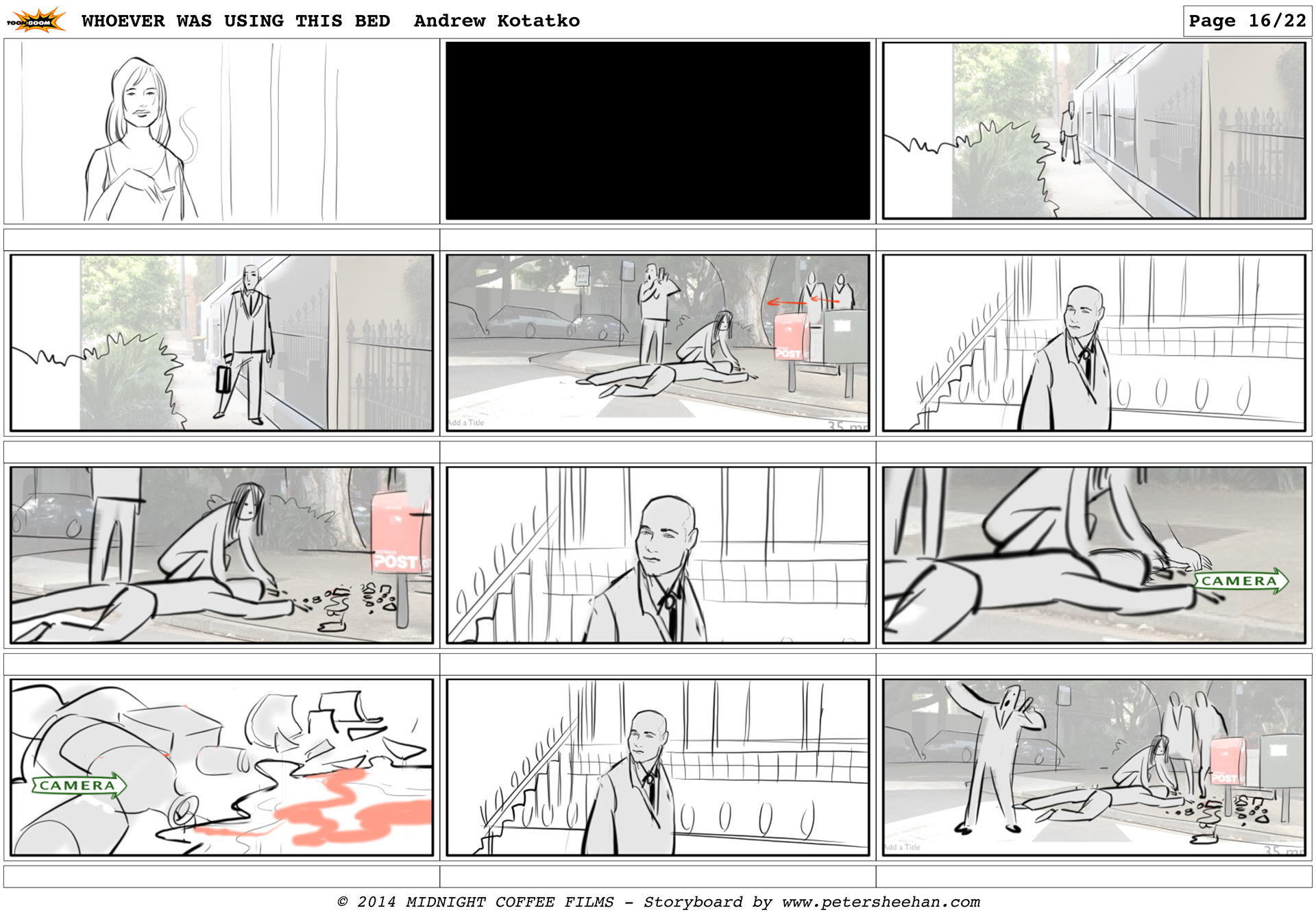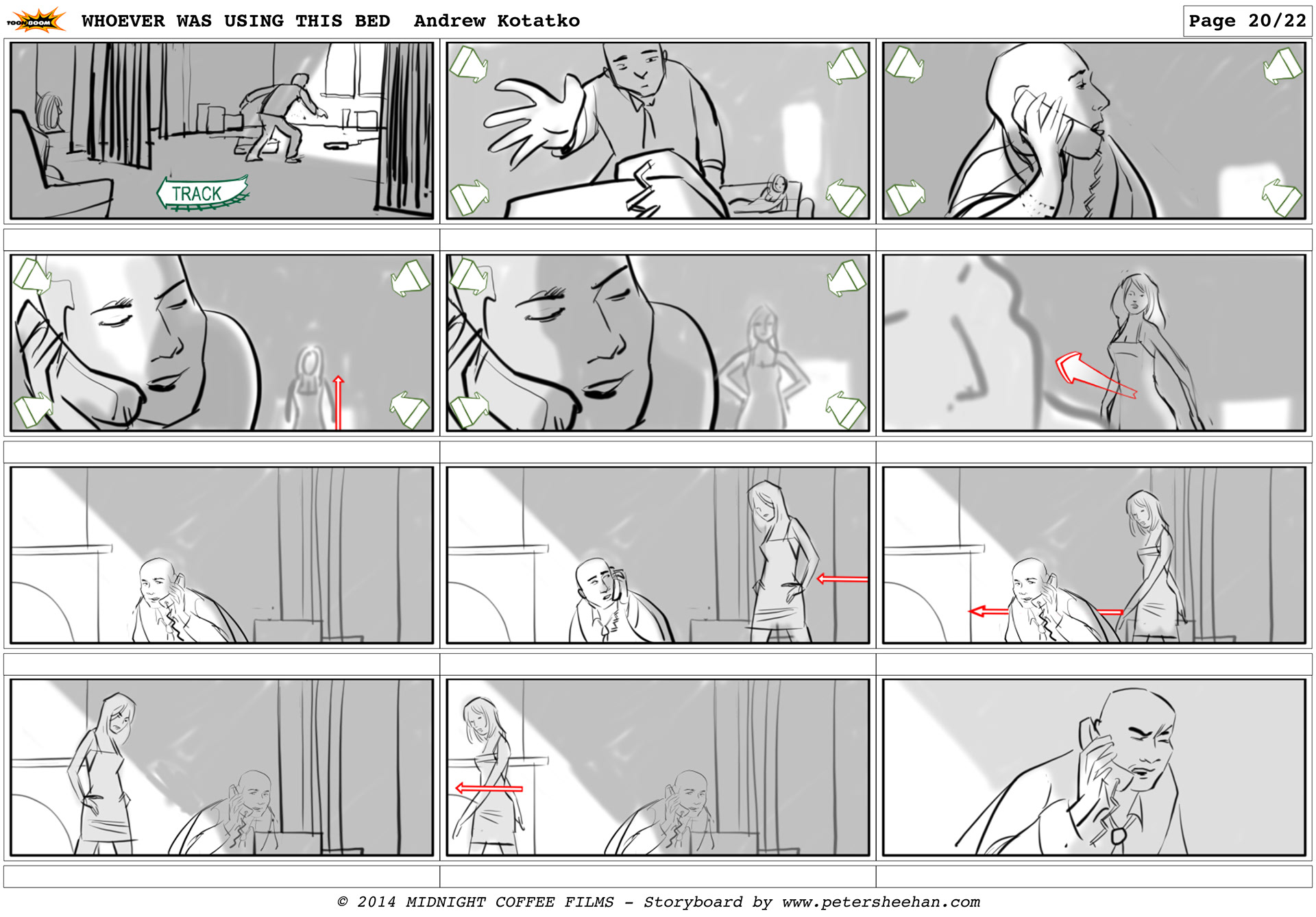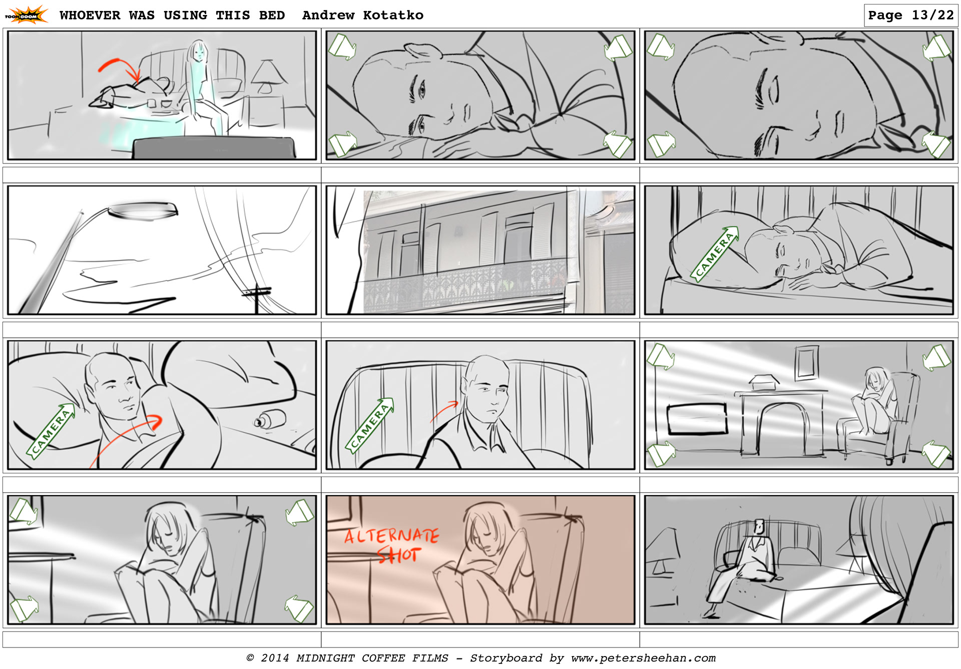 The storyboard for the short film WHOEVER WAS USING THIS BED, directed by Andrew Kotatko.